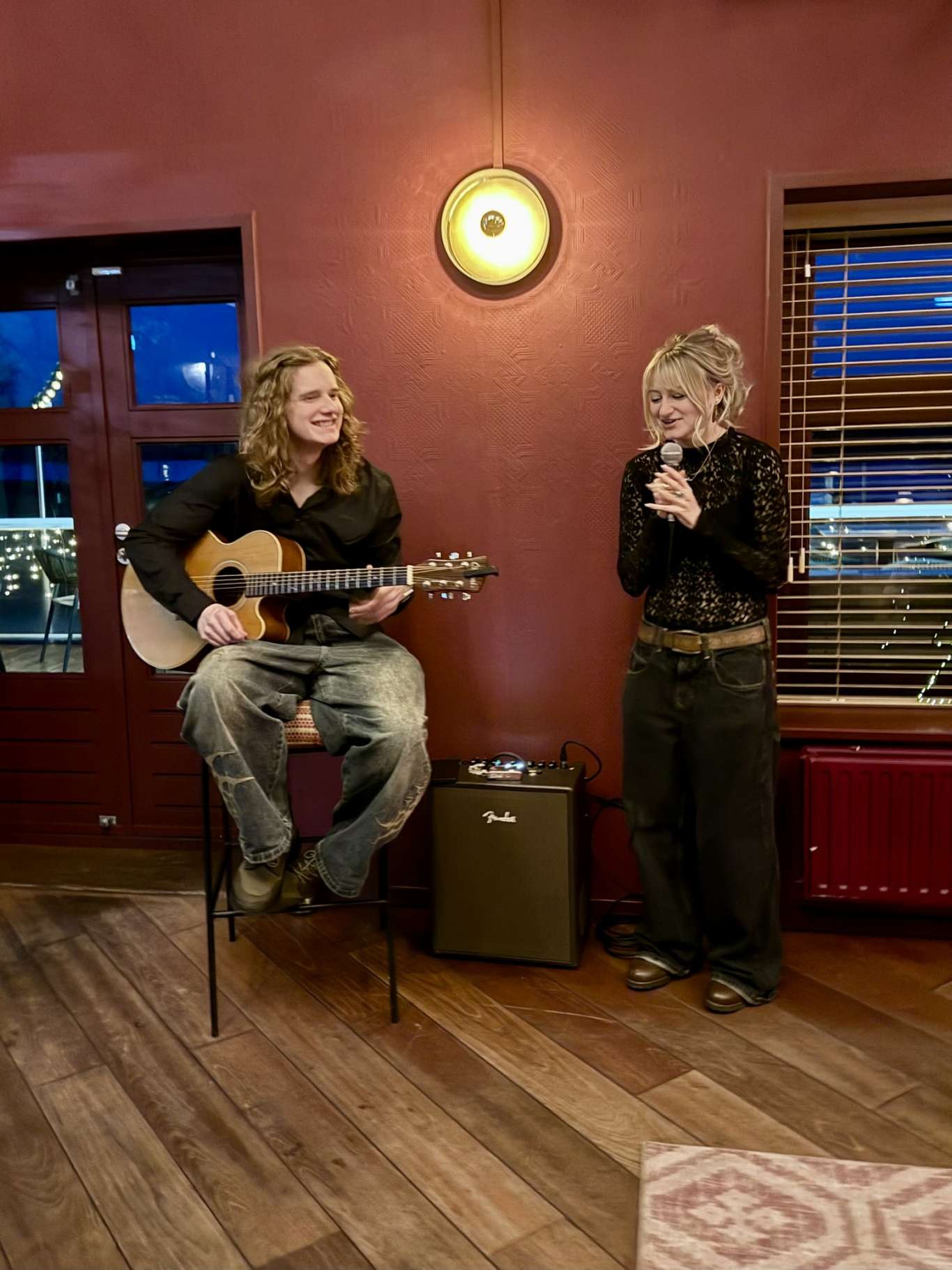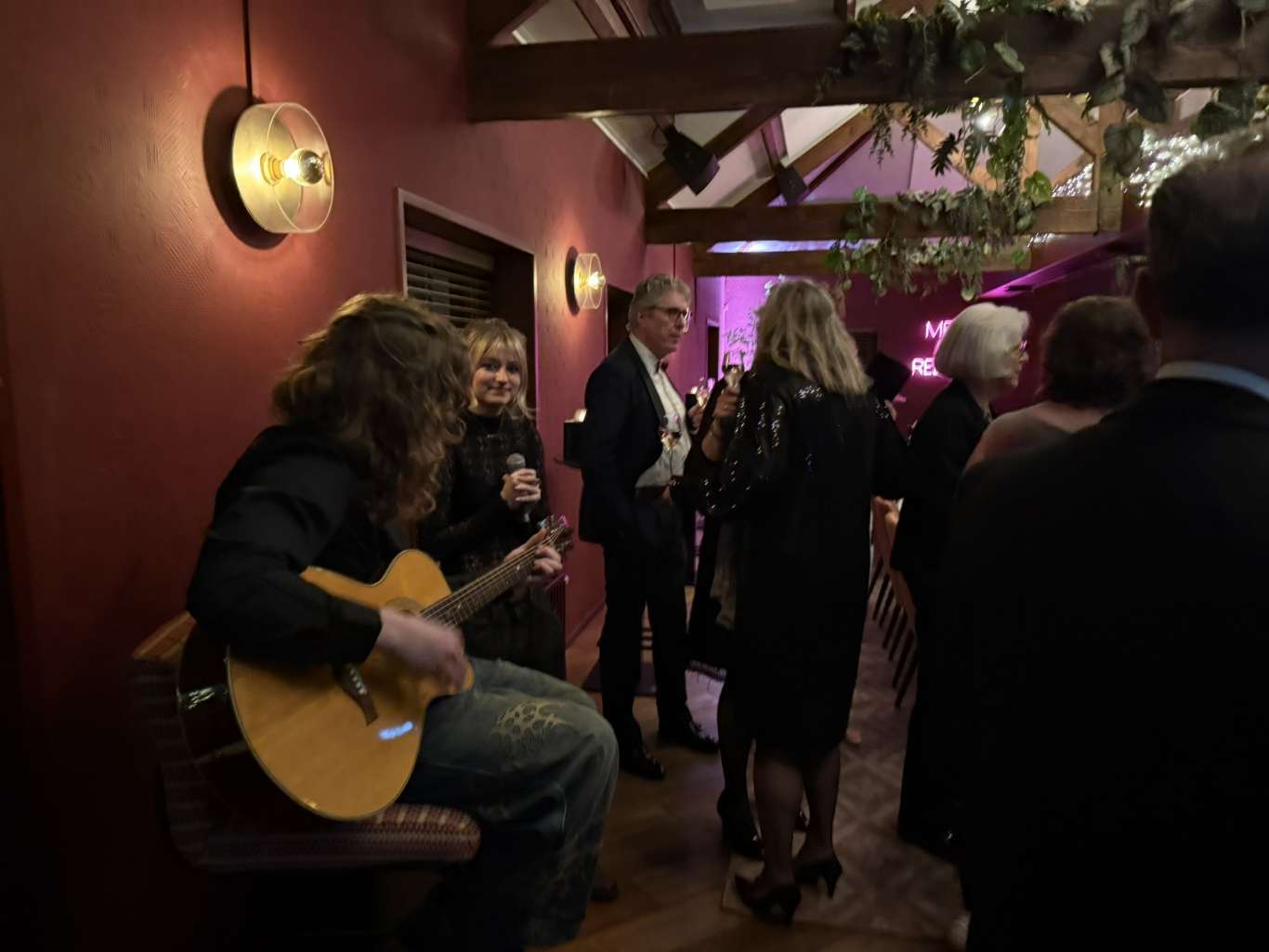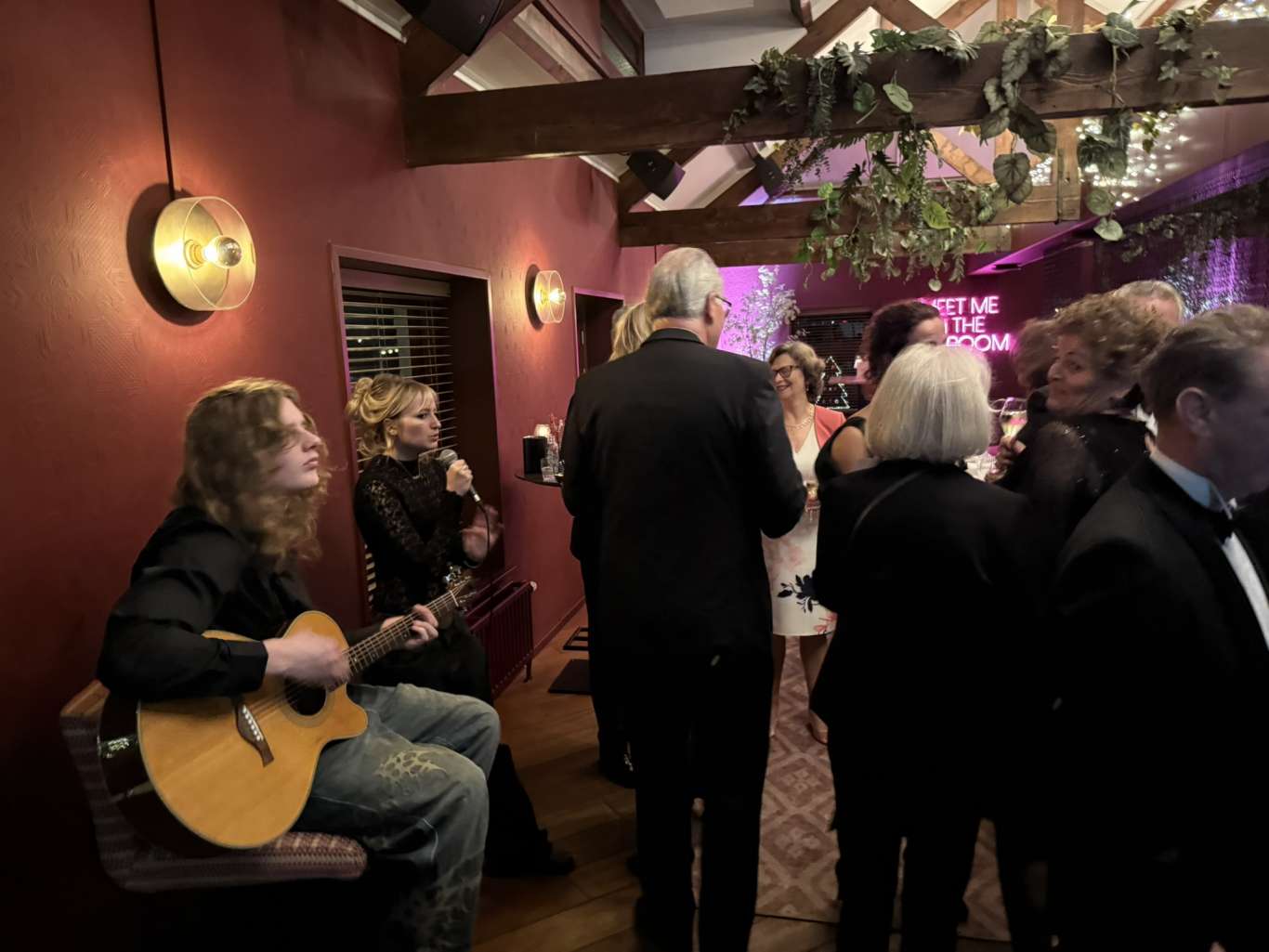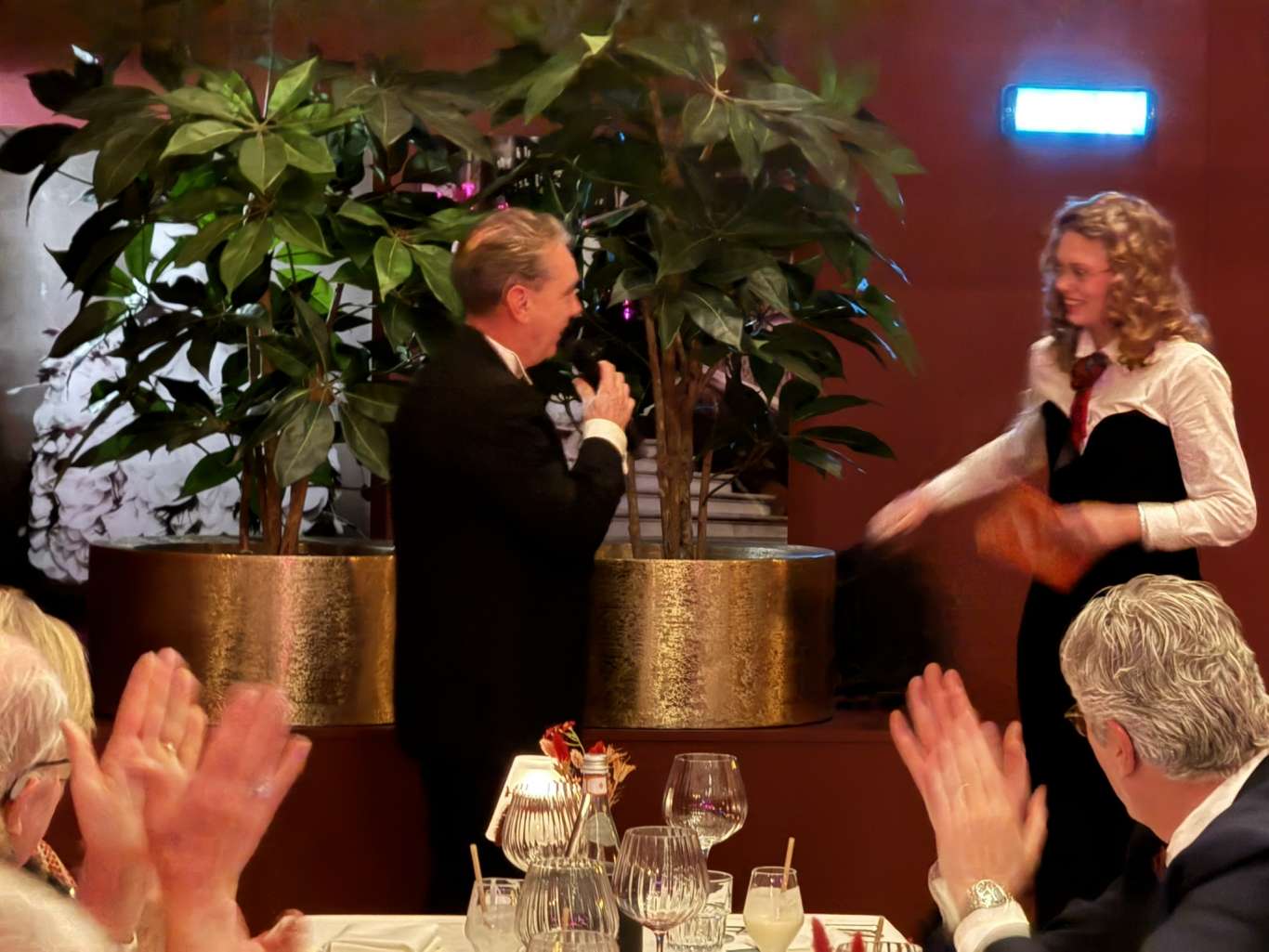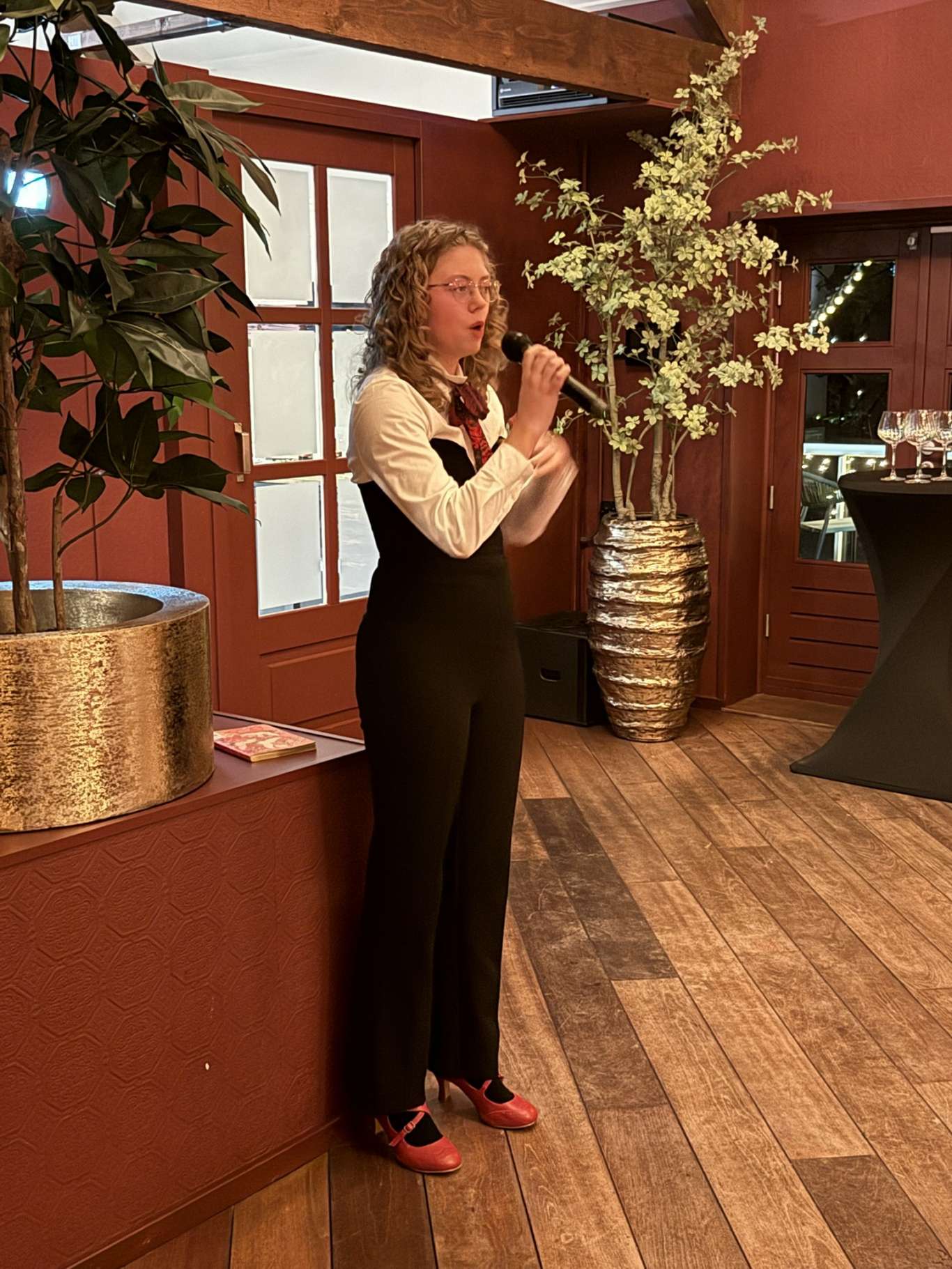Bij ontvangst stonden Angelina en Sem ons al op te wachten met een heerlijk stukje muziek. Na het voorgerecht trad Evi op, spoken word kunstenaar. Zij trakteerde ons op een prachtige dichterlijk optreden, Nederlands, Frans en Latijn afgewisseld. Wat mooi om te zien dat dit jonge Osse talent het er op een podium zo goed van af brengt.