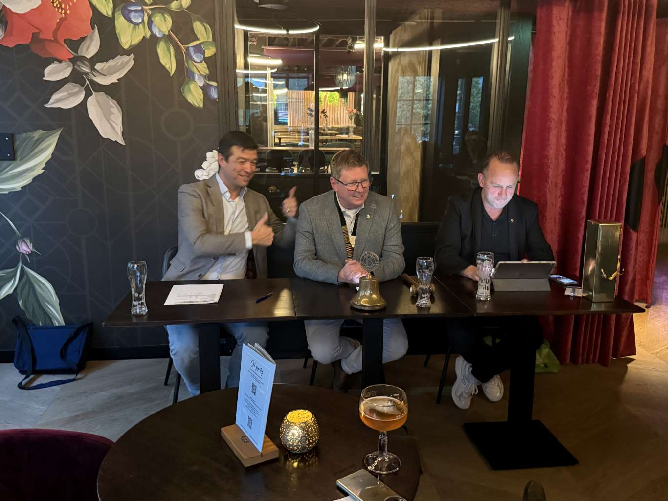 Na de officiele wisseling nam Joris het woord en kondigde het thema van het nieuwe bestuur aan: "Jong in Beweging". Dat betekent dat veel van onze activiteiten en de ondersteuning van goede doelen hierop betrekking zal hebben de komende twee jaar. Na het serieuze gedeelte gingen we naadloos en als vanoud over op gezellige aangelegenheden.